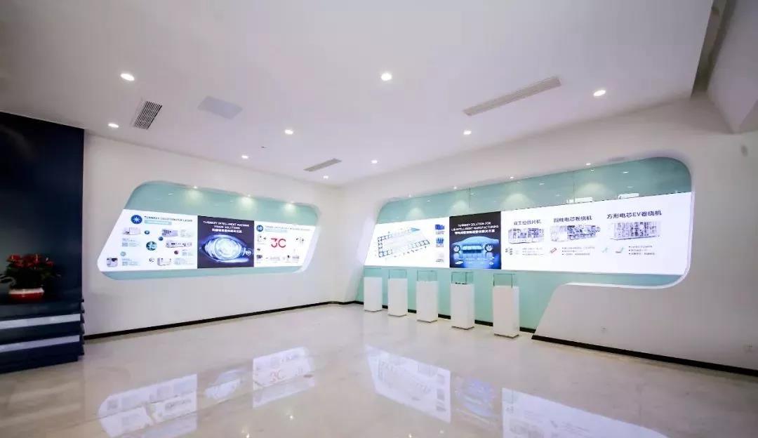 數字化的智慧展廳的建設對企業尤為重要,是對外展示企業形象的重要窗口,是企業自身的形象名片。先導智能展廳大樓整體及內部設計無不體現大企風貌,結合LOGO的元素為主色調,凸顯展廳風格和企業文化。進門大廳的梯形屏與造型相互映襯,融為一體,甚是美觀。