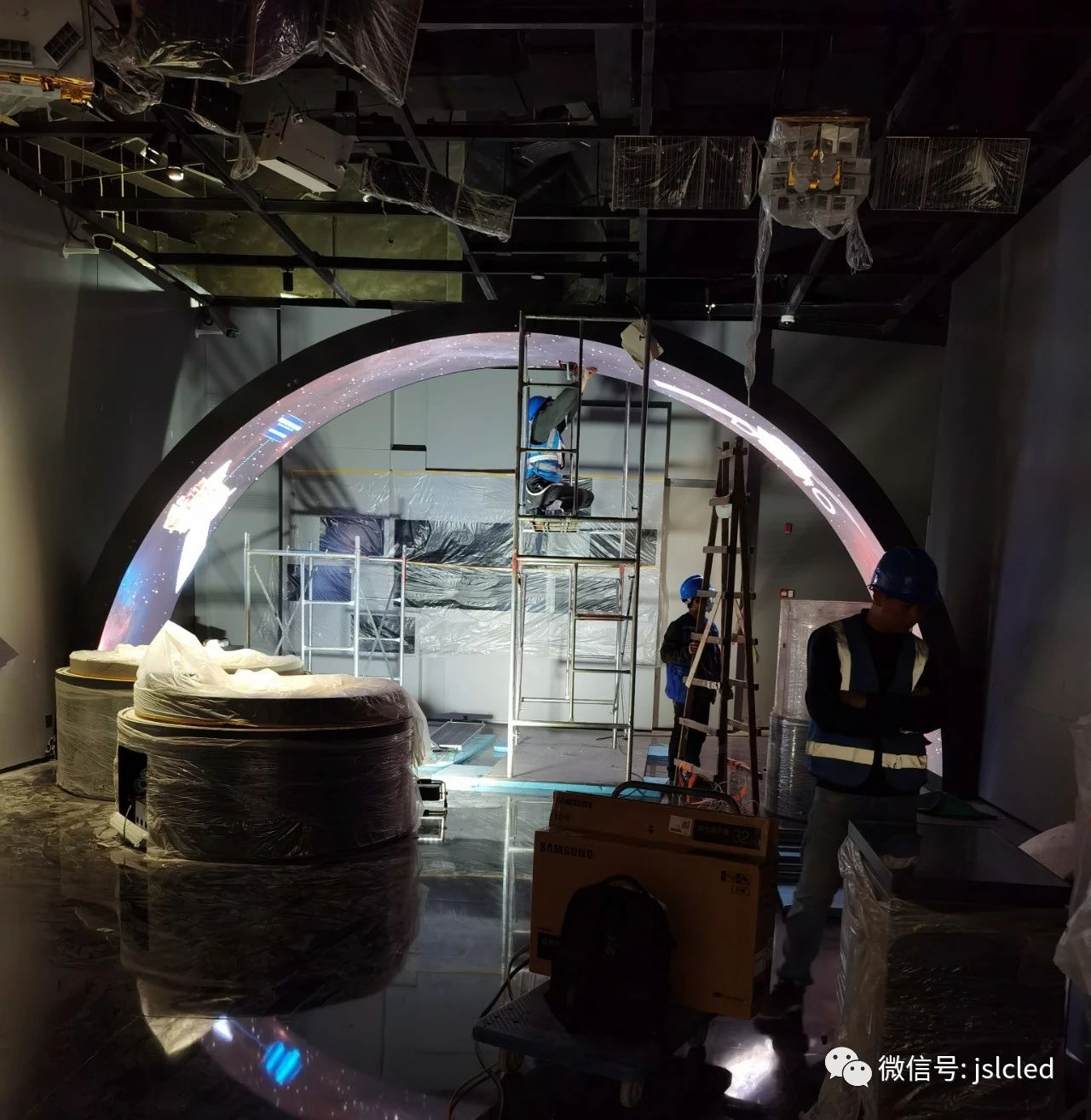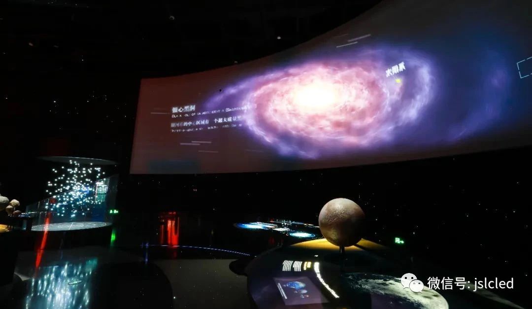 江蘇亮彩憑借豐富的項目經驗及過硬的產品品質,獲得了參與上海天文館的大屏建設機會,為場館承制了兩塊LED顯示屏,分別是“家園”主題展區內太陽屏和拱形屏
